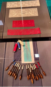 Obr. 1 Paličkování krajky. Kantcentrum Bruggy, Belgie[2] (foto Lucie Tikalová)